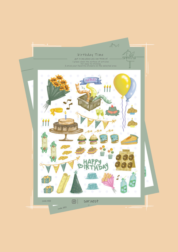 مجموعه استیکر های سارنِست به صورت انحصاری تصویر سازی وتولید شده ،ابعاد این محصول A5 هست و جنس آن pvc مقاوم در برابر آب ، این محصول دارای ۴۳ آیتم تولد هست که با خط برش اجرا شده به راحتی از سطح اصلی جدا میشه و شما میتونید استیکر ها رو هر جا که دوست دارید بچسبونید