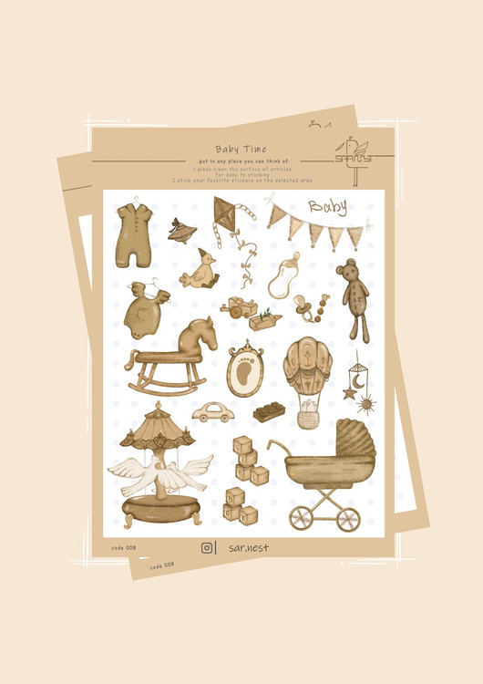 مجموعه استیکر های سارنِست به صورت انحصاری تصویر سازی وتولید شده ،ابعاد این محصول A5 هست و جنس آن pvc مقاوم در برابر آب ، این محصول دارای ۲۱ آیتم کودک هست که با خط برش اجرا شده به راحتی از سطح اصلی جدا میشه و شما میتونید استیکر ها رو هر جا که دوست دارید بچسبونید