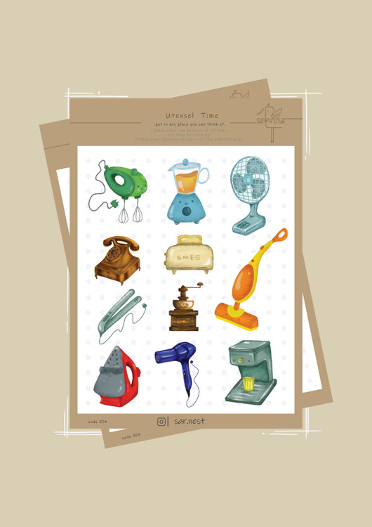 مجموعه استیکر های سارنِست به صورت انحصاری تصویر سازی وتولید شده ،ابعاد این محصول A5 هست و جنس آن pvc مقاوم در برابر آب ، این محصول دارای ۱۱ آیتم وسیله برقی هست که با خط برش اجرا شده به راحتی از سطح اصلی جدا میشه و شما میتونید استیکر ها رو هر جا که دوست دارید بچسبونید