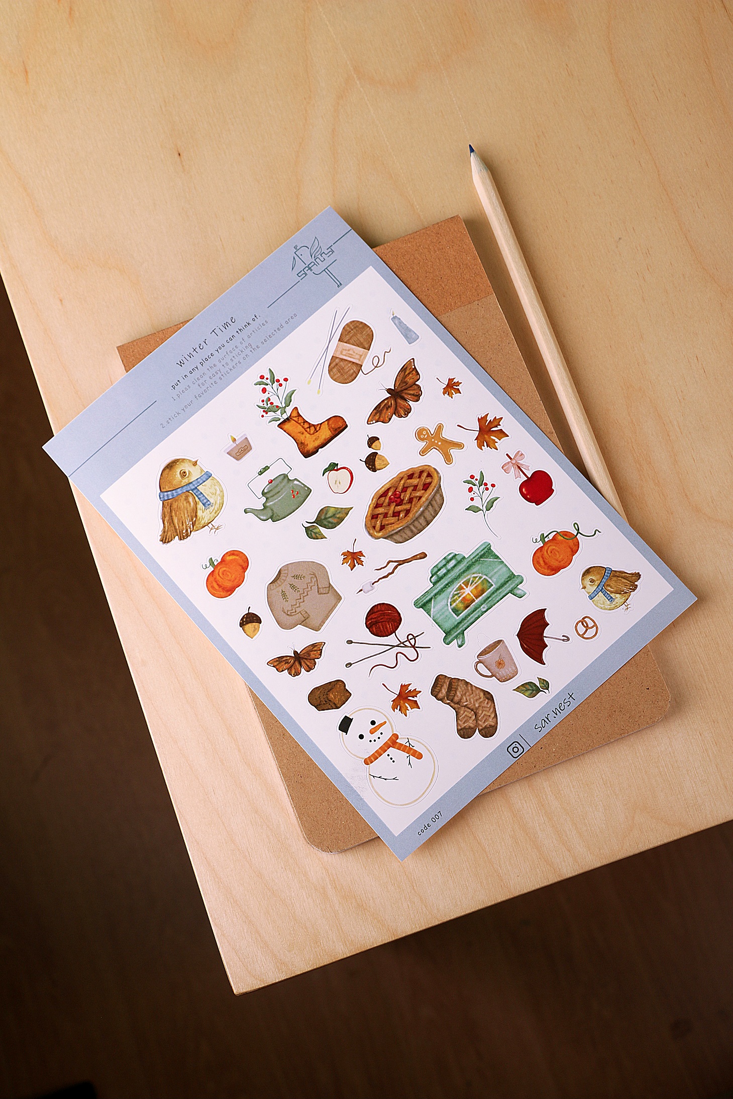 مجموعه استیکر های سارنِست به صورت انحصاری تصویر سازی وتولید شده ،ابعاد این محصول A5 هست و جنس آن pvc مقاوم در برابر آب ، این محصول دارای ۳۴ آیتم زمستونه هست که با خط برش اجرا شده به راحتی از سطح اصلی جدا میشه و شما میتونید استیکر ها رو هر جا که دوست دارید بچسبونید