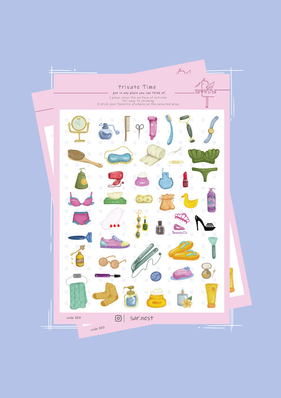 مجموعه استیکر های سارنِست به صورت انحصاری تصویر سازی وتولید شده ،ابعاد این محصول A5 هست و جنس آن pvc مقاوم در برابر آب ، این محصول دارای ۴۸ آیتم دخترونه هست که با خط برش اجرا شده به راحتی از سطح اصلی جدا میشه و شما میتونید استیکر ها رو هر جا که دوست دارید بچسبونید